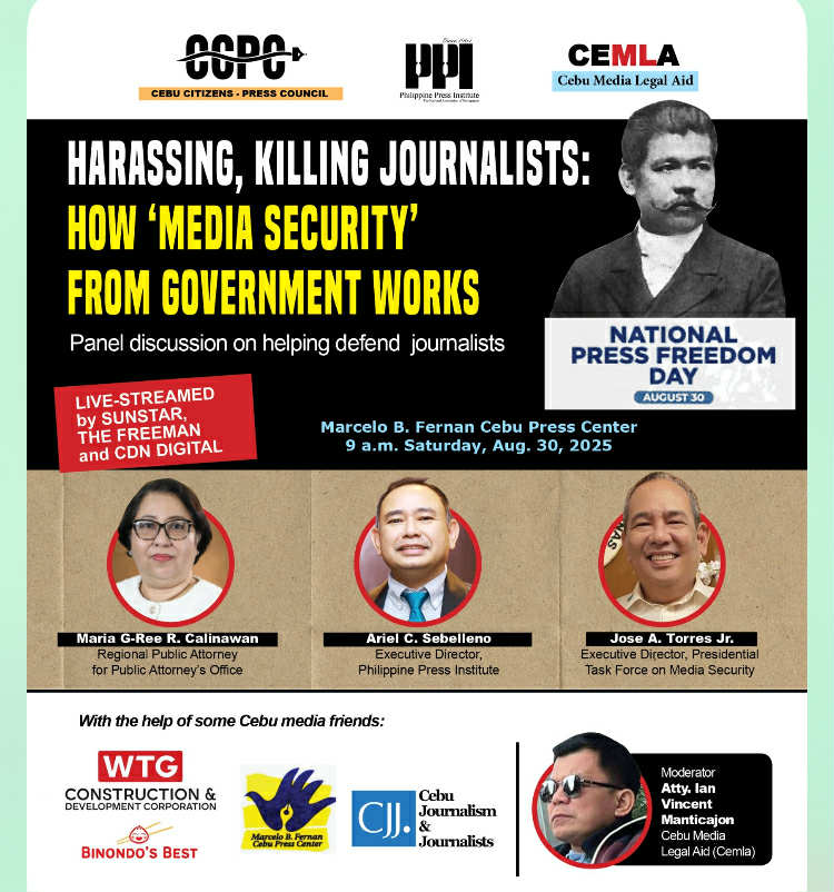 The 2025 National Press Freedom Day panel discussion held last Aug. 30, 2025 highlighted, if not dug up fresh for the Cebu public, sobering requirements for a journalist to get legal assistance from the Public Attorney’s Office under its agreement with the Presidential Task Force on Media Security (PTFoMS).